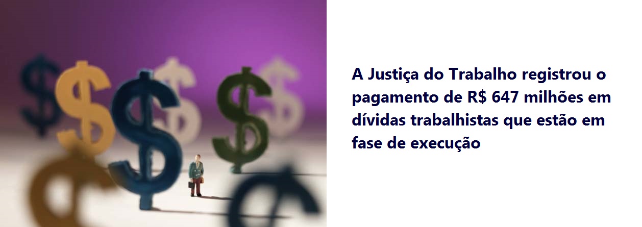 A Justiça do Trabalho registrou o pagamento de R$ 647 milhões em dívidas trabalhistas que estão em fase de execução.