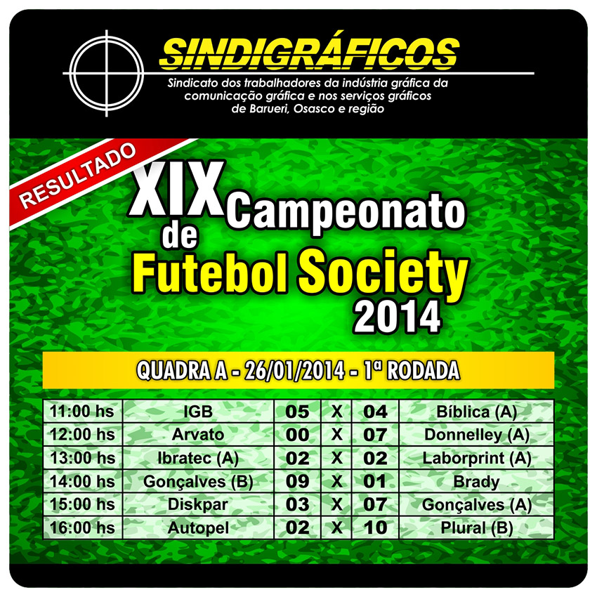 No domingo, 26/1, começaram os jogos XIX Campeonato de Futebol Society! No Metalclube (Clube do Sindicato dos Metalúrgicos de Osasco e Região), localizado no Rochdale, Rua Luiz Rink, 501, Osasco.