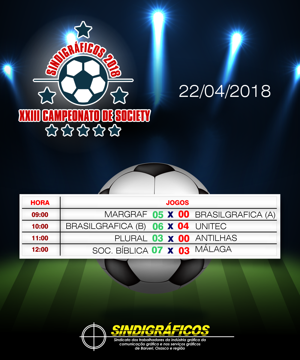 No último domingo, 22/4, as equipes do Campeonato de Society do Sindigráficos se enfrentaram em novos jogos!