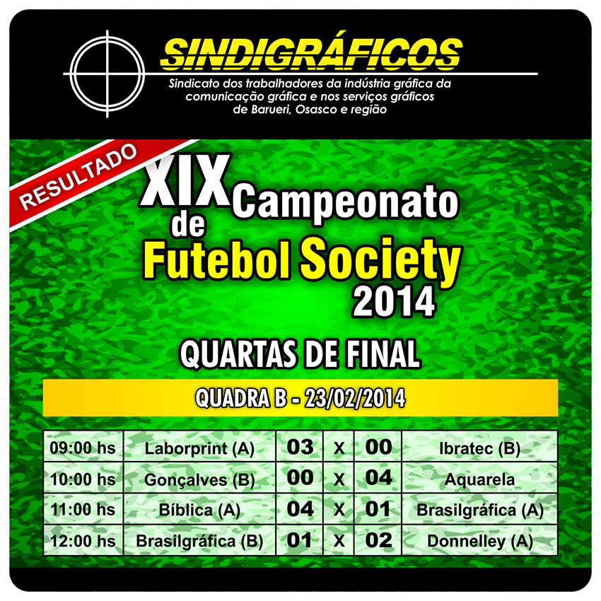 Gráficos, confiram os resultados das Quartas de Final do XIX Campeonato de Futebol Society do Sindigráficos!