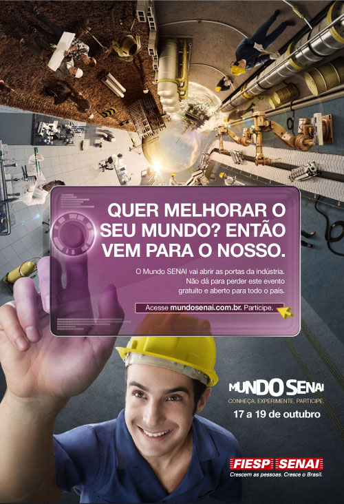 No período de 17 a 19 de outubro, o Serviço Nacional de Aprendizagem Industrial (SENAI) abrirá as portas de suas unidades em todo o Brasil para receber a comunidade, estudantes, parceiros e empresários. É o Mundo SENAI, que desperta o interesse dos visitantes pelas diversas profissões industriais e promove a aproximação com a indústria. “É uma oportunidade para os jovens conhecerem as opções de carreira e a importância da educação profissional para conquistar uma vaga no mercado de trabalho”, diz o diretor de Operações do SENAI, Gustavo Leal.