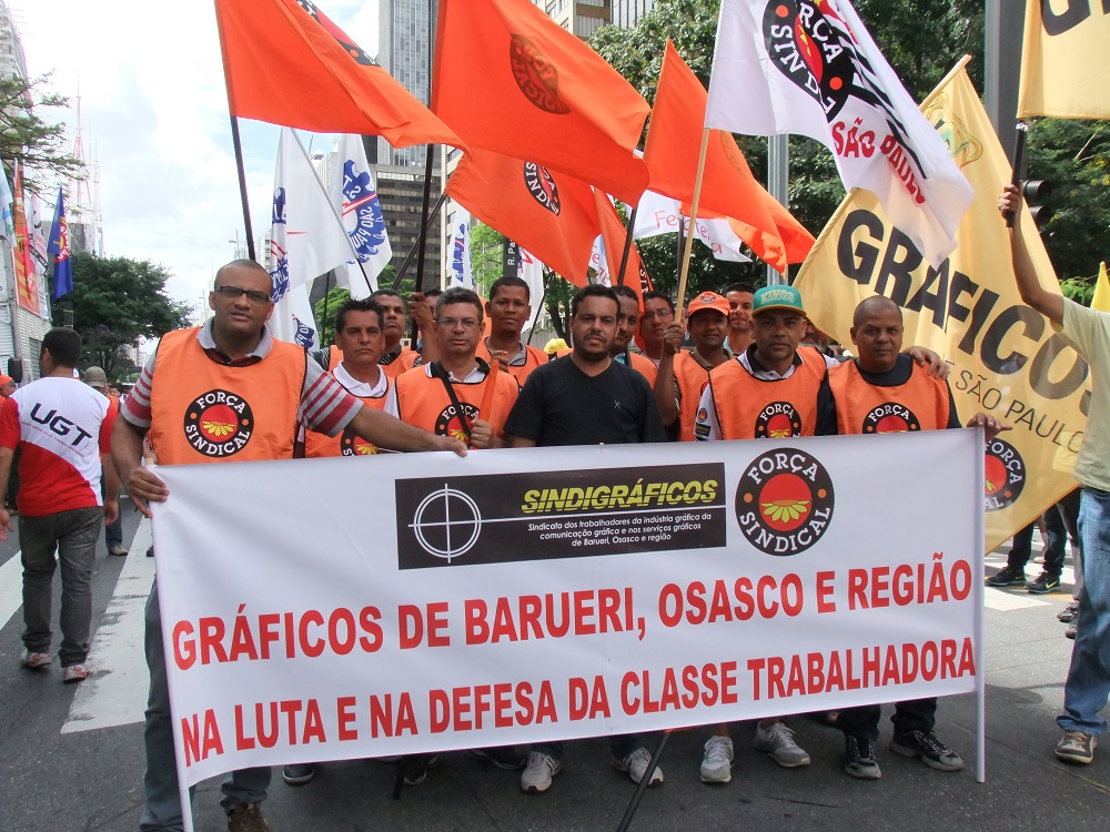 Na manhã desta quarta-feira, 28/1, o Sindicato dos Gráficos de Barueri, Osasco e Região (Sindigráficos) participou do ato unificado das Centrais Sindicais denominado Dia Nacional de Lutas por Empregos e Direitos, para protestar contra as modificações impostas pelas Medidas Provisórias 664 e 665, aprovadas pelo Governo Federal, em diversos direitos do trabalhador, como o seguro-desemprego, pensão por morte, abono salarial e auxílio-doença. Em São Paulo, Centrais, sindicatos e diversas categorias reuniram-se na Avenida Paulista.