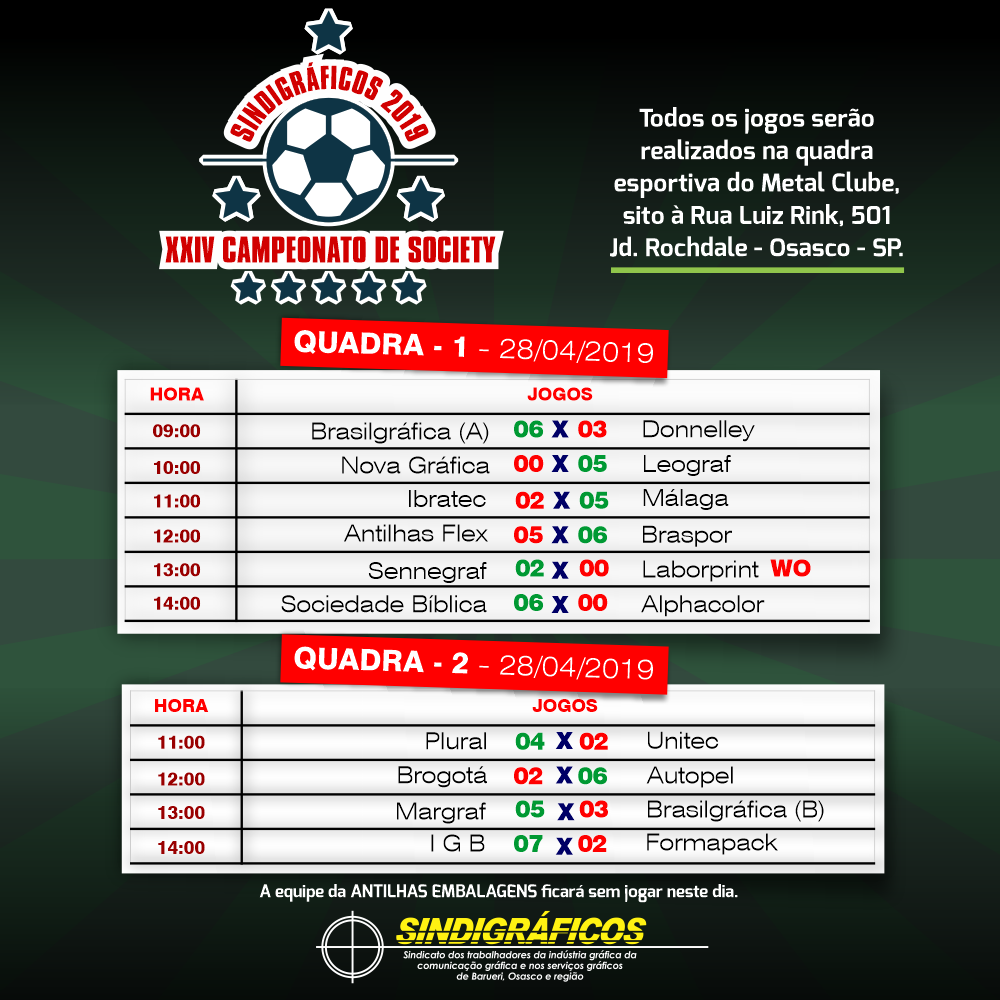 XXIV Campeonato de Society: Confira os resultados dos últimos jogos!